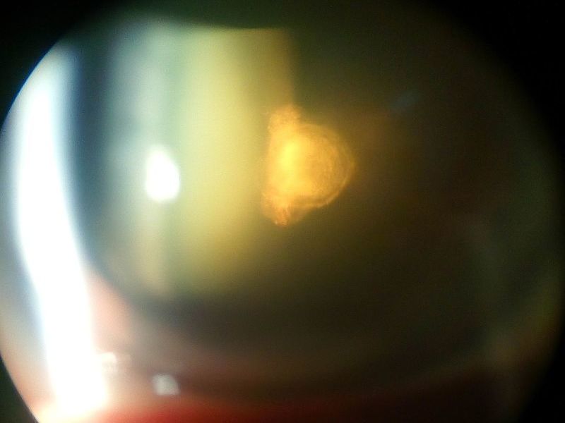 Posterior capsular opacification, also known as after-cataract, is a condition in which months or years after successful cataract surgery, vision deteriorates or problems with glare and light scattering recur, usually due to thickening of the back or posterior capsule surrounding the implanted lens, so-called 'posterior lens capsule opacification'. Growth of natural lens cells remaining after the natural lens was removed may be the cause, and the younger the patient, the greater the chance of this occurring. Management involves cutting a small, circular area in the posterior capsule with targeted beams of energy from a laser, called Nd:YAG laser capsulotomy, after the type of laser used. The laser can be aimed very accurately, and the small part of the capsule which is cut falls harmlessly to the bottom of the inside of the eye. This procedure leaves sufficient capsule to hold the lens in place, but removes enough to allow light to pass directly through to the retina. Serious side effects are rare. Posterior capsular opacification is common and occurs following up to one in four operations, but these rates are decreasing following the introduction of modern intraocular lenses together with a better understanding of the causes.